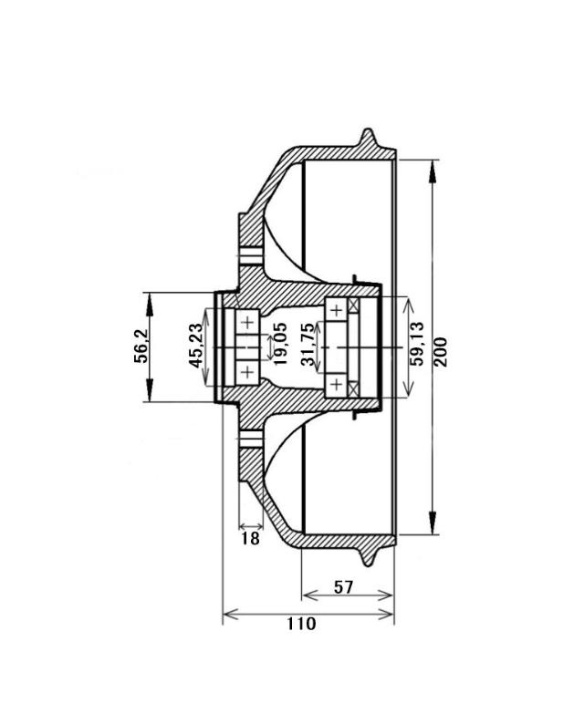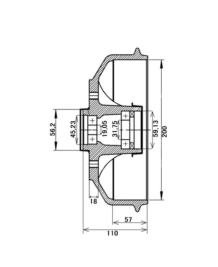 - Bremsetrommel med lager