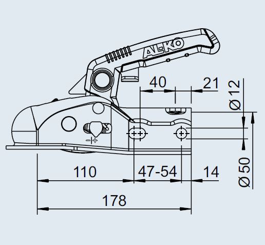 Kulekobling 1600Kg Ø35/45/50mm AL-KO AK161 med lås