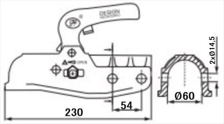 Kulekobling 3500Kg Ø60mm SPP Støpt, passer til Knott M14/M14 vannrett mont.