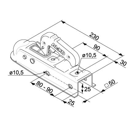 Kulekobling 0750Kg 50mm firkant AL-KO AK7/D vannrett/loddrett mont.