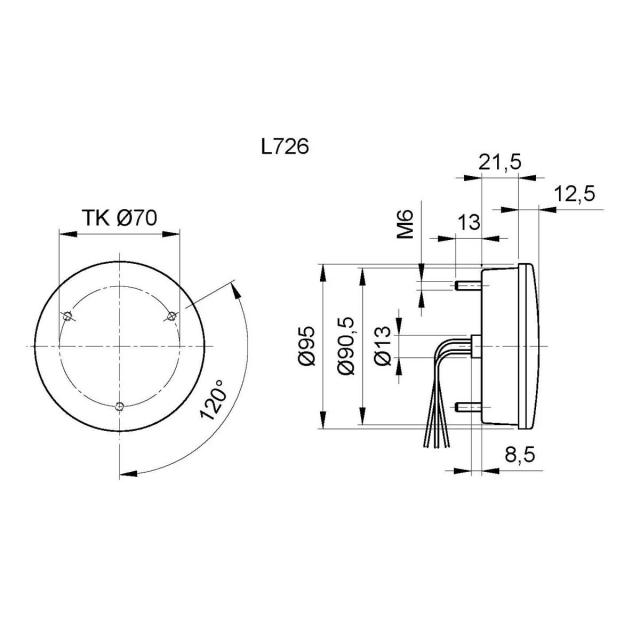 Baklykt LED Jokon 726 BLS 24V bak og blinklys 0,5m kabel , Utgår