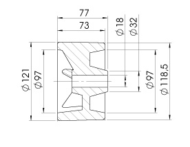 Siderulle Ø121x77mm, til Ø18mm aksel