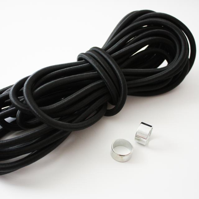 Elastiksnor 6mm, 7,5m med 2 klemmer, svart