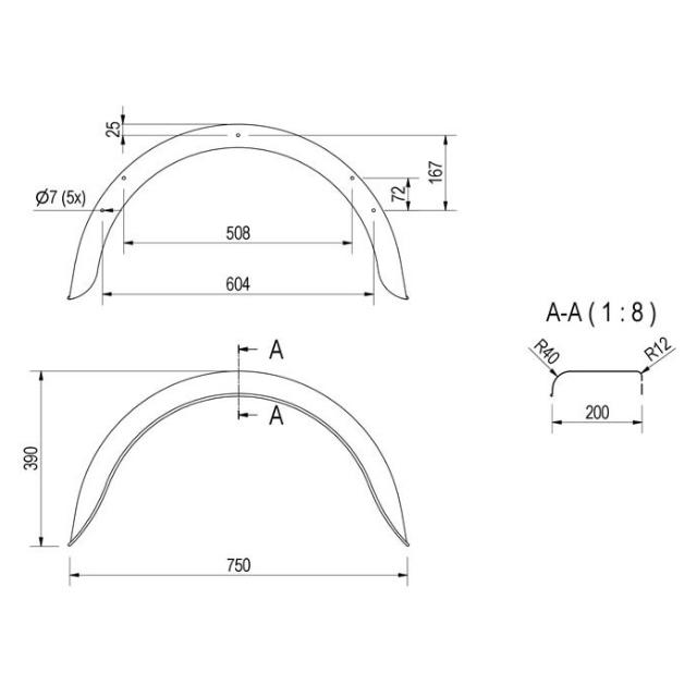 Skjerm enkelaksel B200 S750 H390mm stål